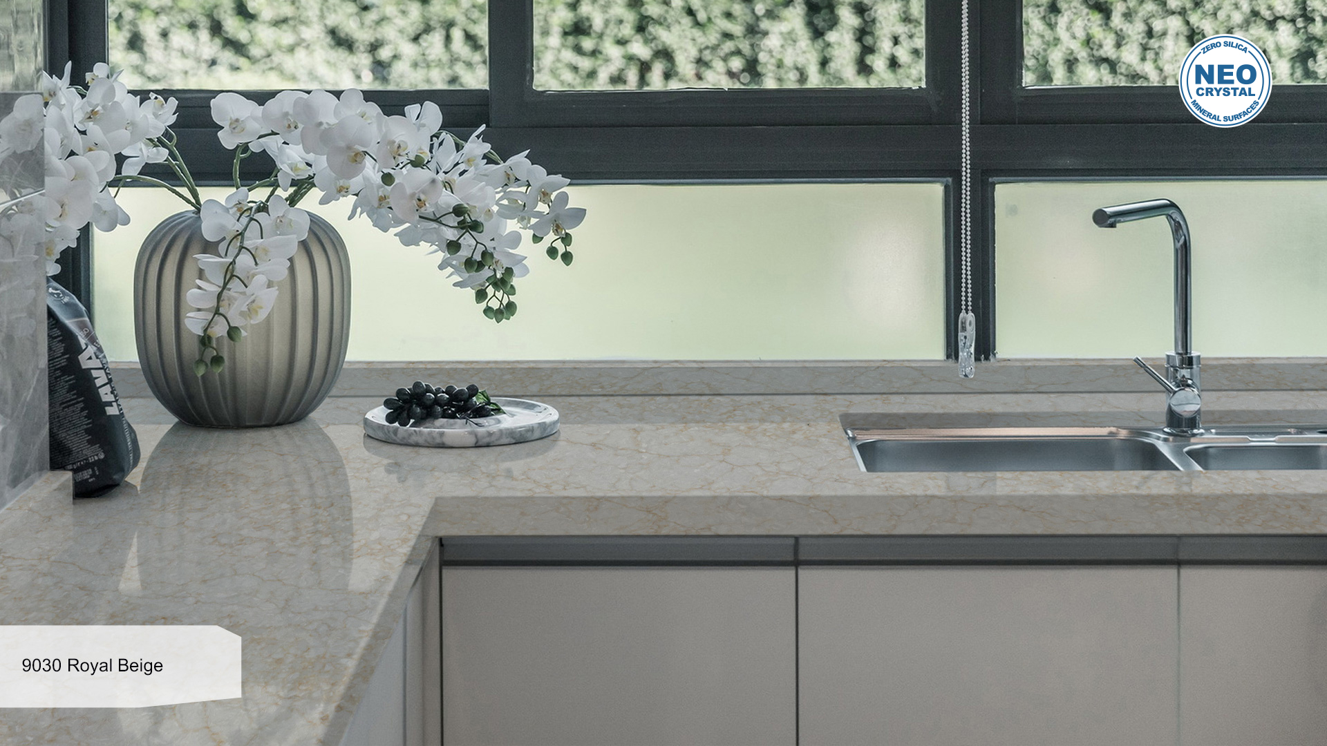 Συνδυάζοντας τα καλύτερα της φύσης και της ανθρώπινης δεξιοτεχνίας, αυτό το φιλικό προς το περιβάλλον υλικό αποτελείται από φυσικούς κόκκους χαλαζία (95%), πολυμερείς ρητίνες (4%) και χρωστικές ουσίες (1%).